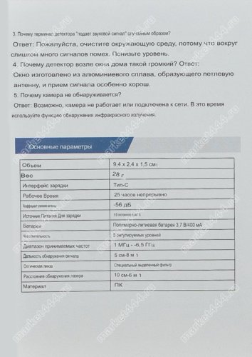 Наименование | Детектор прослушки и скрытых камер Сыщик 32 |